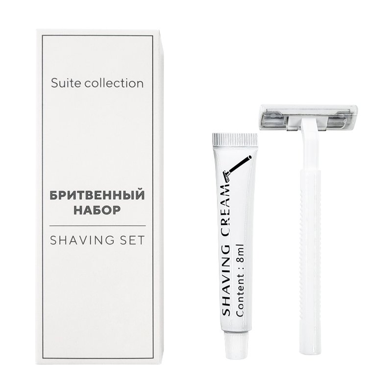Бритвенный набор «Suite Collection» — это готовое и эстетичное решение для гостя. Включает одноразовый станок белого цвета с двумя лезвиями и увлажняющей полоской, а также гель для бритья (5 мл) для любой кожи. Станок имеет защитный колпачок. Весь набор упакова