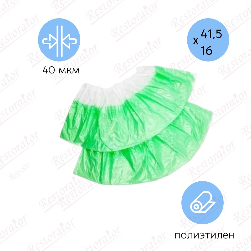 Одноразовые бахилы цветные с резинкой, ПНД, 40 мкм